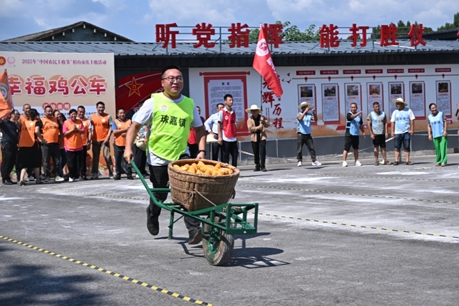 高兴套大鹅、快手剥玉米、美好鸡公车等项目相同兴趣十足,这些充溢农耕气味的游戏,让参与者深度体会到了耕耘的趣味,更在欢声笑语中拉近了人与自然、传统与现代的间隔。